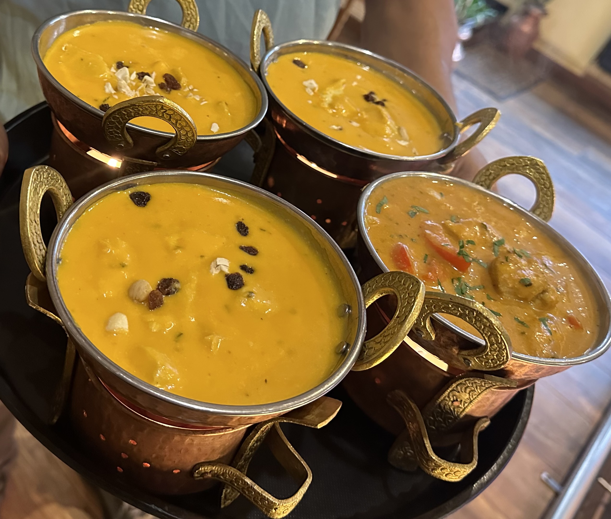 This unique Nepalese thali is a combination of dal, bhaat, tarkari, any meat and buckwheat finger chips and a generous dollop of ghee. Usually, this set is served in a bronze plate typically used by Thakali people and similar bronze bowls to serve curry dishes to complete the full-fledged meal.